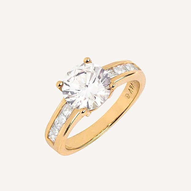 Anillo de la Coleción Signature hecho con Plata de Ley 925 chapada en oro 18kt adornado con piedra central y circonitas, de Vidal & Vidal.