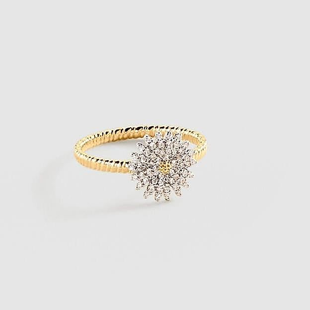 Anillo fino acabado en oro con margarita de strass, de Agatha Paris.