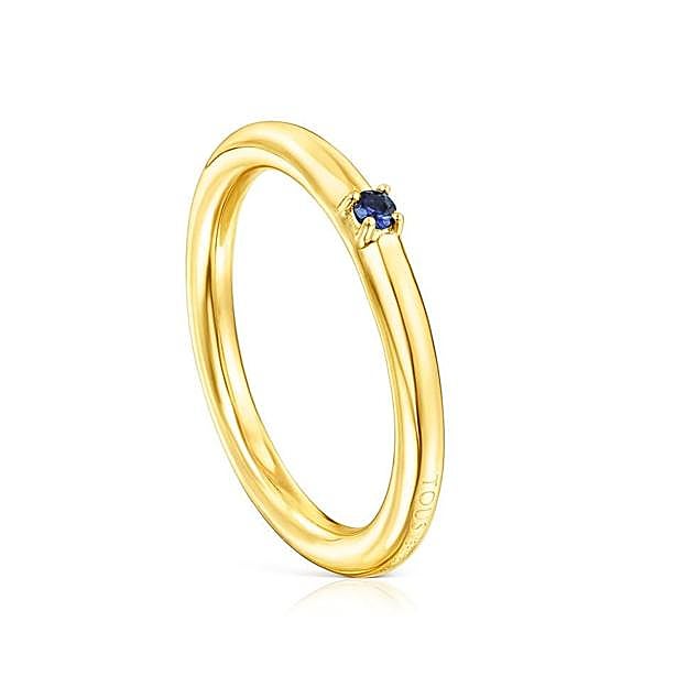 Anillo con baño de oro de 18 kt sobre plata y adornado con un pequeño zafiro de color azul de 2mm, de Tous.