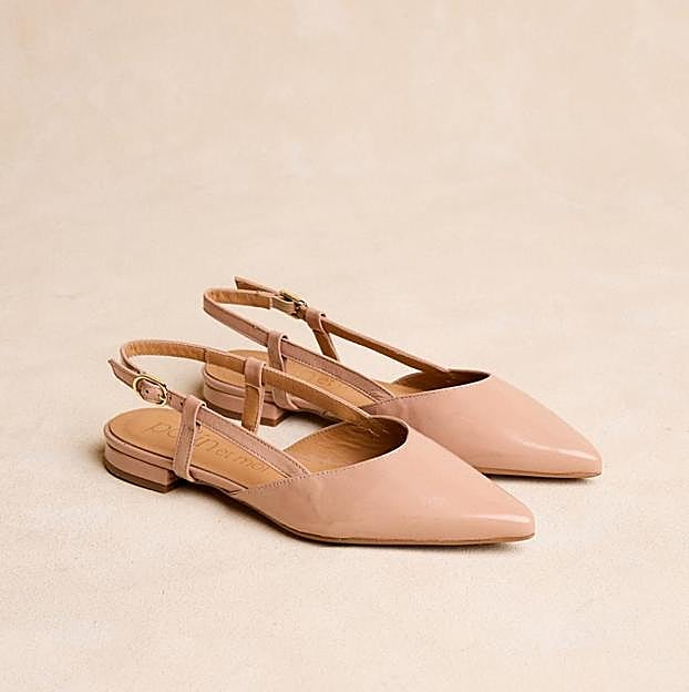 Polín et moi. Bailarina destalonada en color beige, con puntera puntiaguda y escote redondeado (79,95 euros).