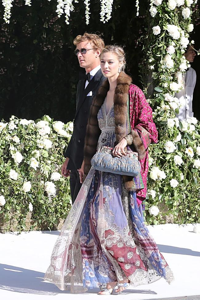 Fue también en 2015, cuando arrasó con un look de invitada muy especial. Noor Fares se casó con Alexandre Al Khawam y Beatrice se convirtió en una de las mejor vestidas de la boda con este espectacular vestido boho. Un diseño con estampado multicolor y mucho vuelo que combinó con un abrigo con pelo y un bolso de tela en la misma sintonía.