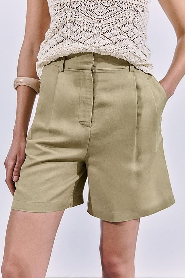 Short fluido liso con pinzas y bolsillos y cierre de corchete y cremallera.