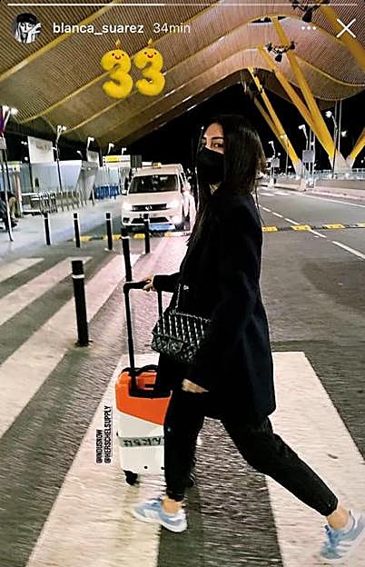 Blanca ha compartido una imagen con la que ha comunicado que ha entrado en los 33 años y con la que ha enseñado que se va de viaje para celebrarlo. Y en ese look aeropuerto, la actriz luce un total look negro acompañado de unas zapatillas de Adidas en color azul.