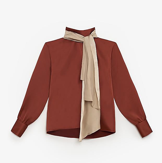 La mejor opción para lucir igual de bien que las famosas la hemos encontrado en Olesia, una marca española que tiene el objetivo de fomentar la moda ética, de calidad y creativa, con diseños únicos. ¡Y lo consigue! Porque ha sacado a la venta esta blusa elaborada con satén, de corte recto que favorece a todo tipo de cuerpos, con un cuello Perkins acompañado de un pañuelo que podrás llevar de diferentes maneras. Suelto, con la lazada hacia delante o detrás, con forma de nudo... Cuesta 95 euros y está disponible en otros colores como el negro o el verde botella. ¡Ideales!
