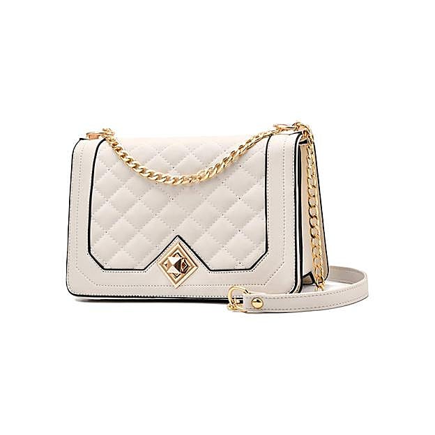 «Es un bolso que puede resultar pequeño, pero es muy practico, caben mas cosas de lo que parece, le cadena brillante que tiene le da un toque de elegancia que queda bien con cualquier conjunto. Lo compré para regalo y gustó mucho. Es de un material rigido que hace que mantenga su forma y que da aspecto de calidad», Ángel.