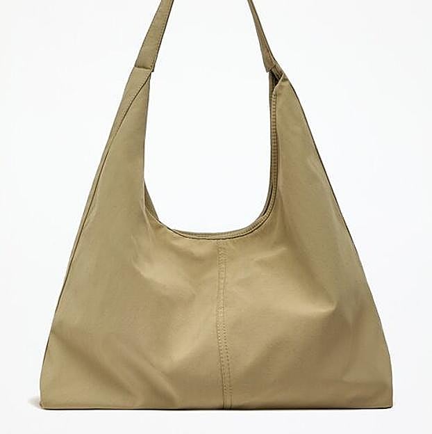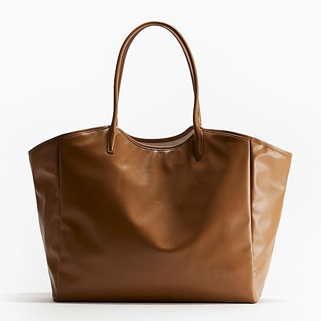 H&M. Bolso shopper grande en tejido revestido con asas finas y compartimento interior con cremallera (25,99 euros).