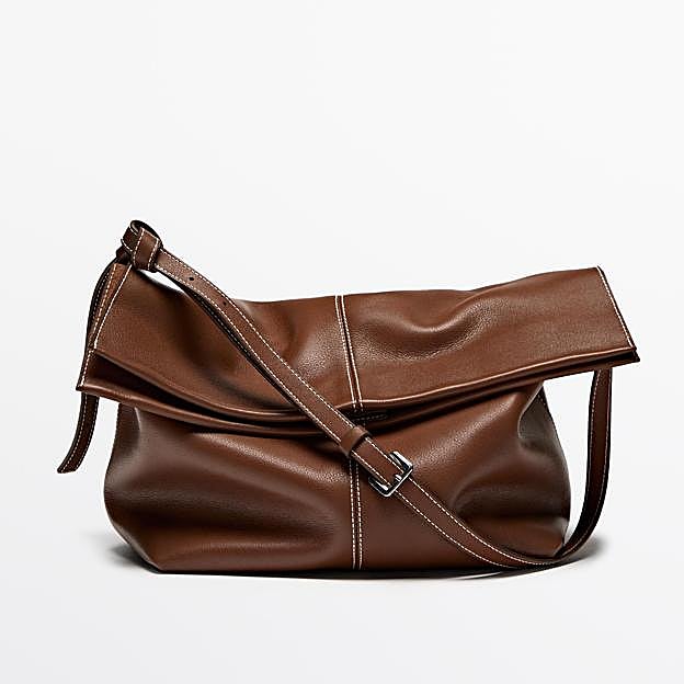 Massimo Dutti. Bolso confeccionado en piel bovina, con asa regulable con hebilla y detalle de costura central (149 euros).
