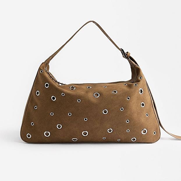 Parfois. Bolso marrón de ante con tachuelas (39,99 euros).
