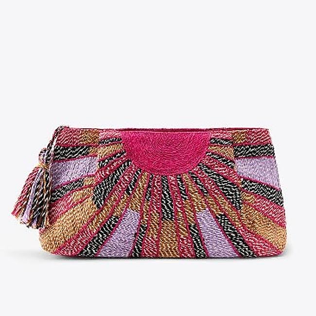 Las secciones de novedades de tus tiendas favoritas llegan cargadas de accesorios de primavera tan especiales como este diseño multicolor. Apuesta por un diseño que puedas llevar como bolso de mano.