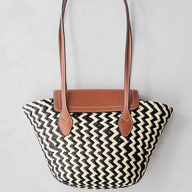 la propuesta más original de esta selección de bolso de rafia la encontrarás en la firma sueca. Los estampados de tipo zigzag aportan un toque sofisticado a cualquier look de verano.