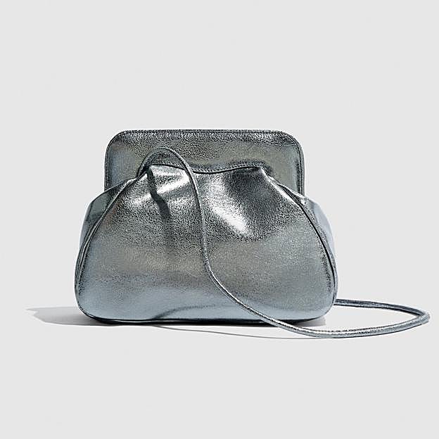Constanza de Phialabel. Bolso de hombro plata con un diseño femenino y versátil, con amplia capacidad en el interior. Con inspiración vintage, está fabricado en piel de napa metalizada plata. Y ha sido giseñado y fabricado íntegramente en España mediante procedimientos y pequeñas producciones sostenibles. Precio: 260 euros.