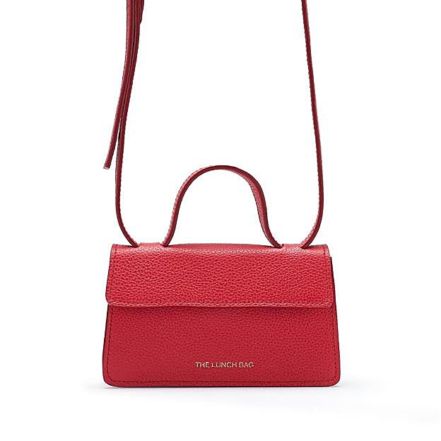 Medium Lunch Bag Red de The Lunch Bag. Bandolera mediana de piel de vacuno, con forro de algodón del mismo color que el bolso. Tamaño ideal para llevar el móvil, las tarjetas, las llaves y el pintalabios. Perfecto para salir a cualquier evento y también para tu look diario si no quieres llevar mucho peso. Precio: 140 euros.
