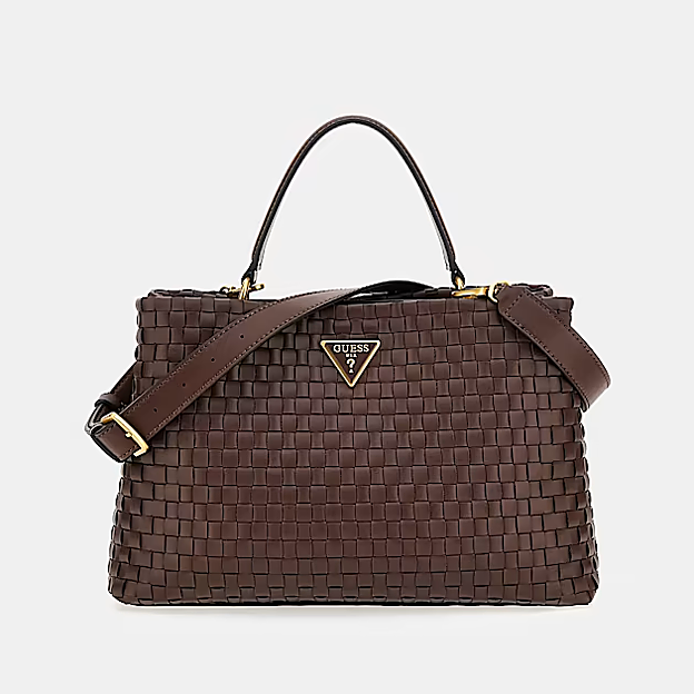 El Bolso de mano lisbet trenzado de Guess es perfecto para los looks todoterreno y las mujeres que necesitan llevar de todo en su bolso, pero sin perder elegancia. Precio: 160 euros.