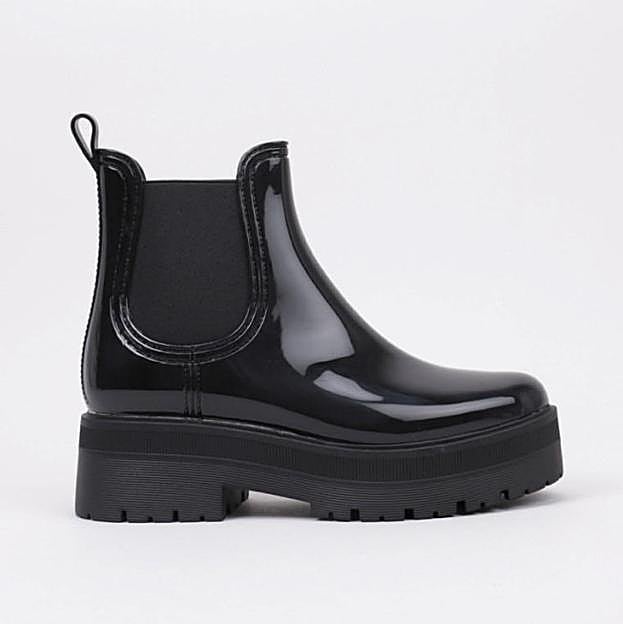 Botas de agua de Krack de color negro con cuela ancha y acabado acharolado. Rebajadas a 44,10 euros.