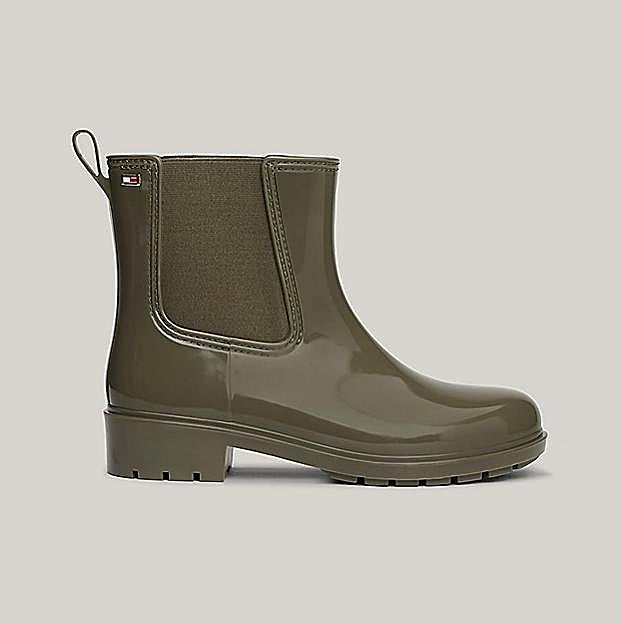 Botas de agua acharoladas de Tommy Hilfiger, que incorporan unos prácticos paneles laterales elásticos inspirados en los clásicos botines Chelsea. Cuestan 99,90 euros.