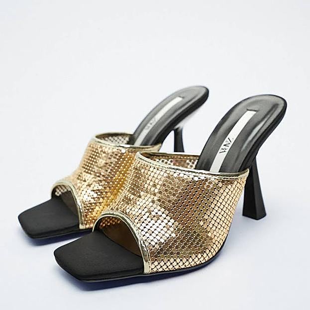 De hecho, tanto impacto han causado sus diseños que Zara no solo se ha decidido a copiarla con estas botas, sino que trae un 2x1 en replicas con unas sandalias destalonadas de tacón que tienen la tira delantera brillante, en el caso de Magda, hecha de cristales y, en el de Zara, de una malla metálica dorada, que puedes conseguir por 35,95 euros. Una ganga en comparación a la de lujo y son prácticamente iguales.
