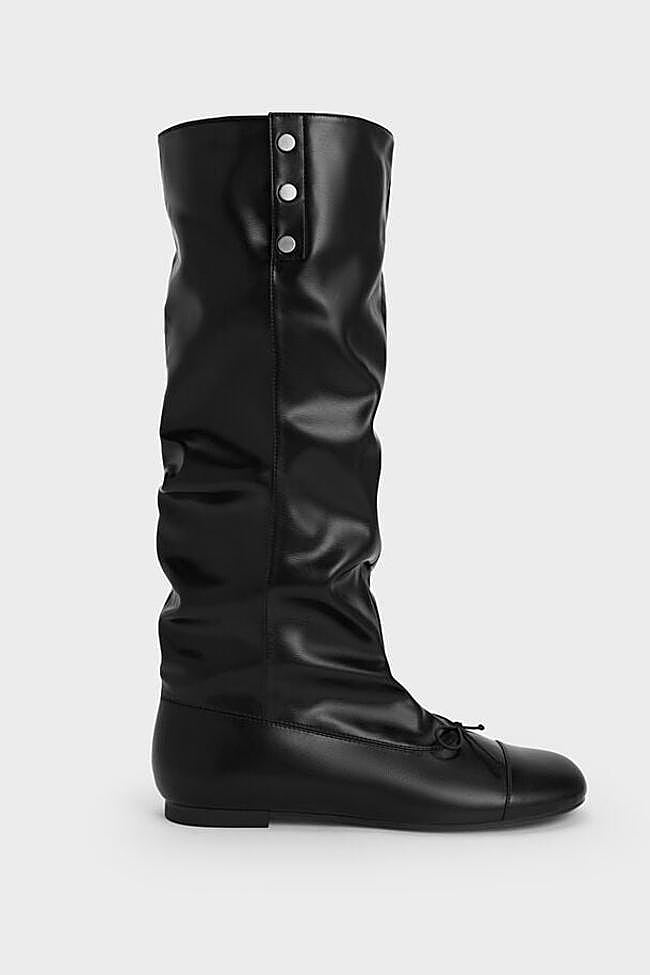 as botas hasta la rodilla Gael de Charles & Keith cuentan con detalles de tachuelas, caña desestructurada, puntera redondeada y detalles de lazo. Precio: 115 euros.