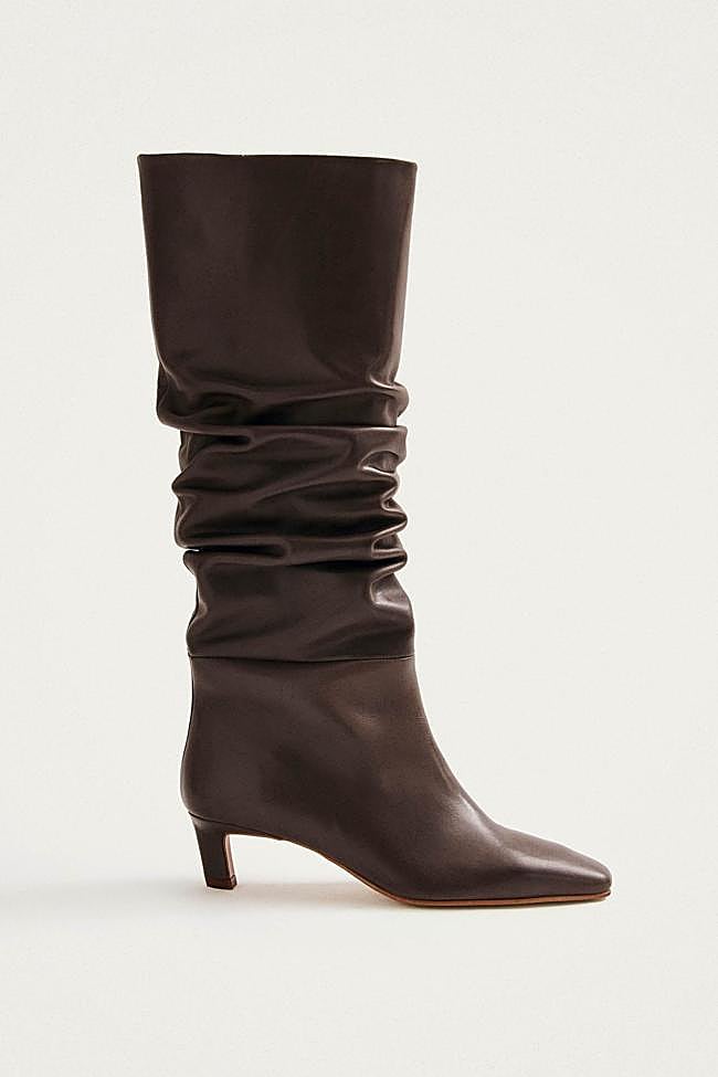 Hablamos de un modelo con caña fruncida que hemos encontrado ya en varias firmas como las novedades de Zara y que puede ser una muy buena idea para llevar a diario. Se llevan planas, con kiten heel o tacón fino muy alto. Y hay colores y materiales para todos los gustos.