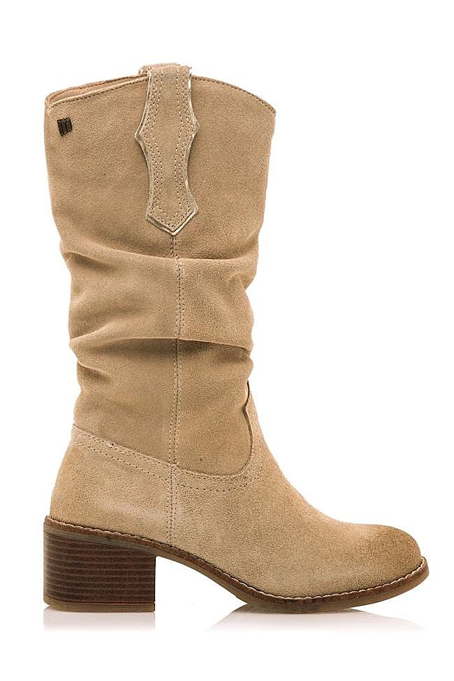Bota plana de Mustang que destaca gracias a su cómoda caña fruncida. Incluye un diseño western en la parte inferior de la bota. Precio: 99,9 euros.