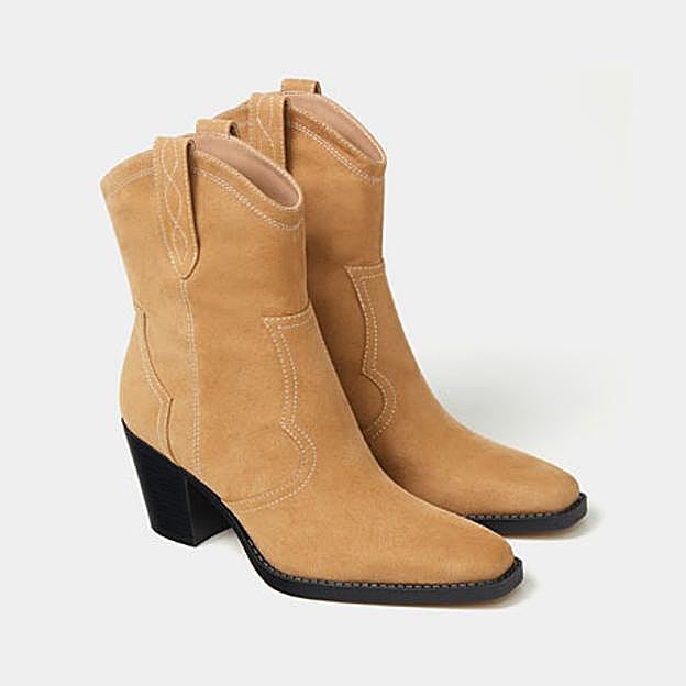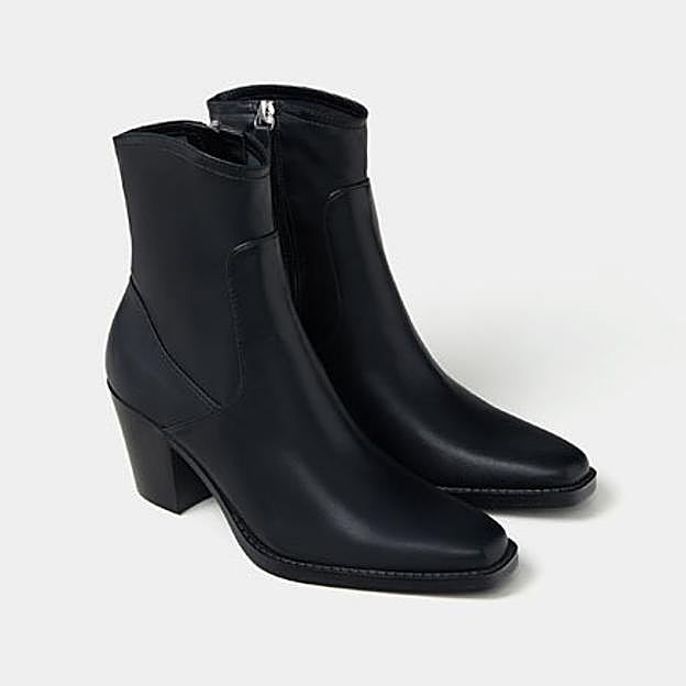 El primero de ellos, es el modelo cowboy. Un diseño en color negro con caña que queda por encima del tobillo y que lleva un tacón medio muy ancho comodísimo. Tiene cierre de cremallera, la puntera ligeramente cuadrada y cuestan tan solo 29,99 euros. ¡No está nada mal!