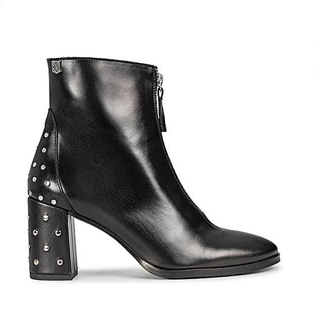 Botín de piel de Popa de tacón ancho adornado con tachuelas y con punta redonda que mejor se ajusta a cada pie. Precio: 139,95 euros.