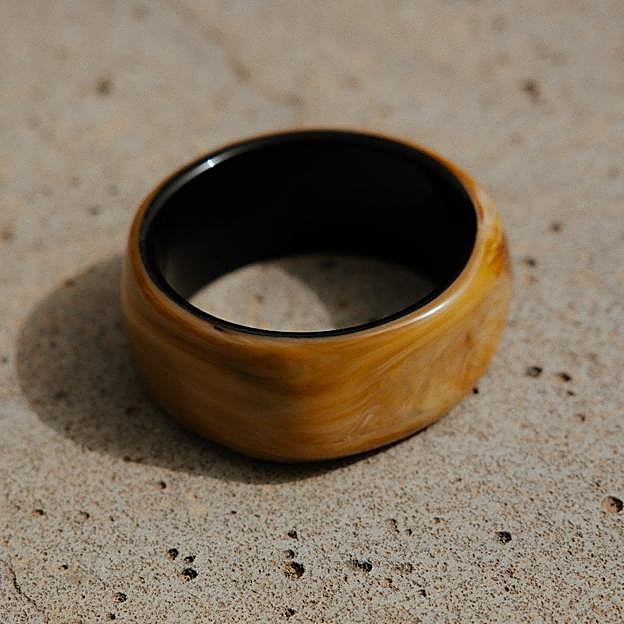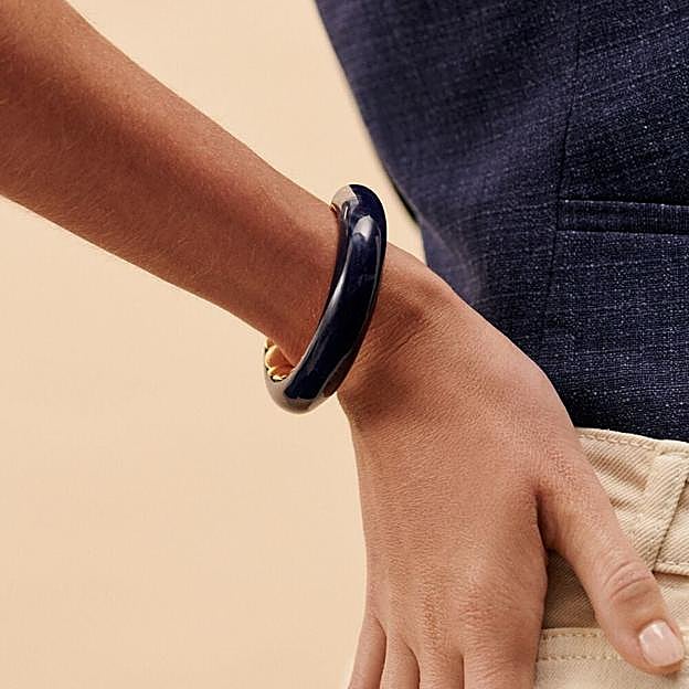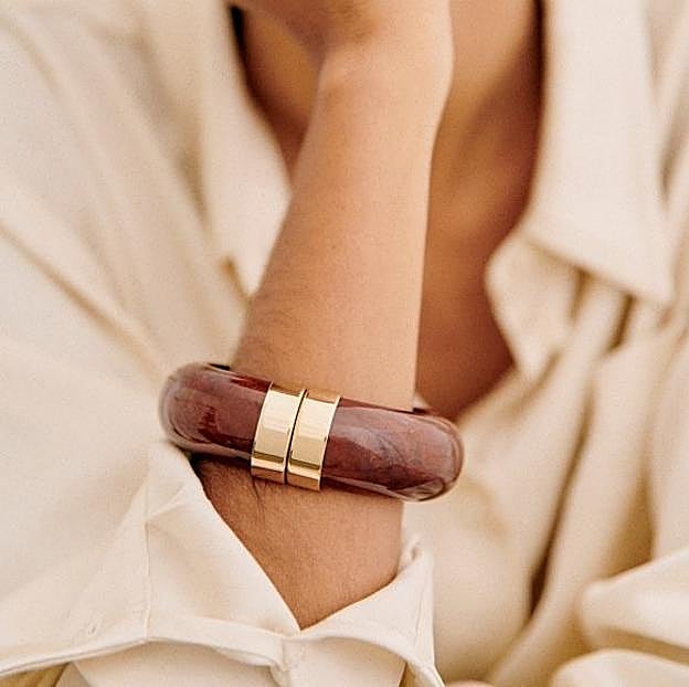 Sézane. Brazalete de latón dorado con oro fino y resina (65 euros).