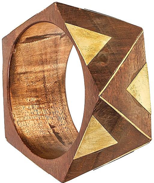 Bijou Brigitte. Brazalete hecho de madera de color marrón oscuro y adornado con adornos dorados (rebajado a 8 euros).
