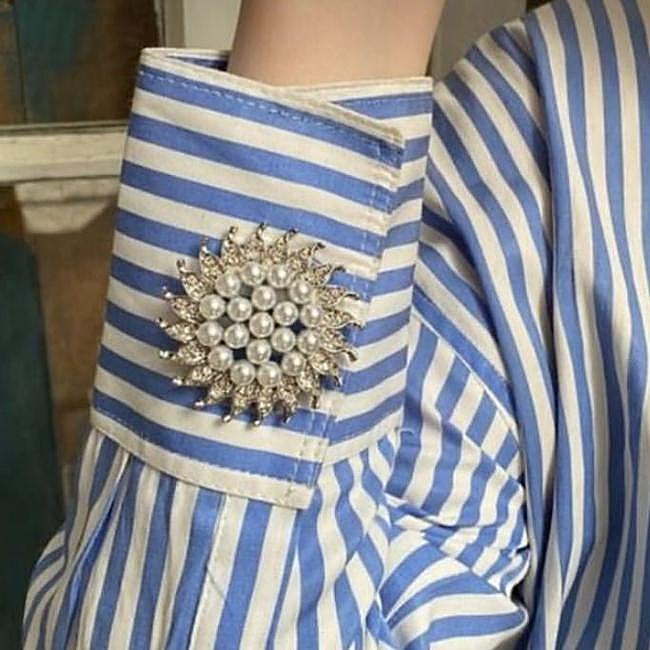 Convierte tu camisa en una prenda joya añadiendo el broche en los puños. También puedes hacerlo en un jersey o blusa.