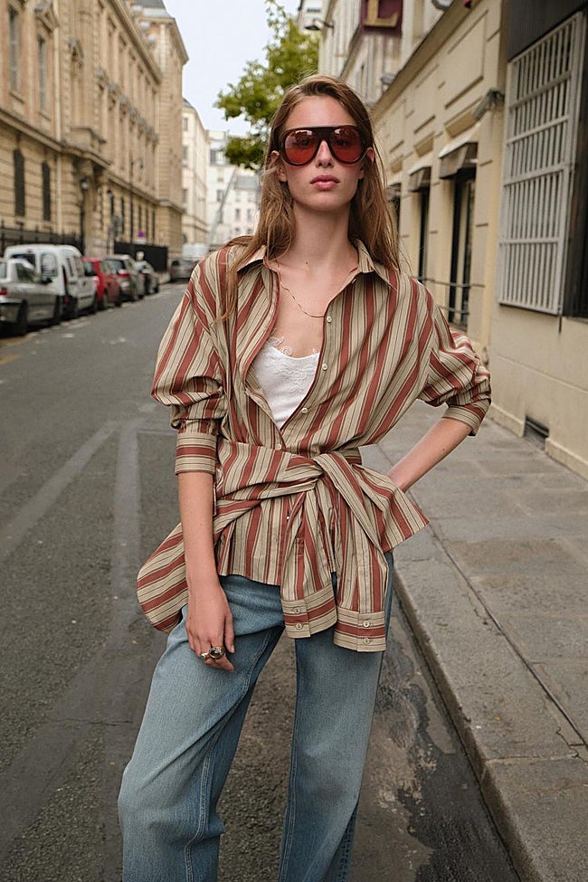 Como es habitual en esta época del año empiezan a resurgir los básicos de entretiempo, como la camisa de rayas. Este diseño de color marrón de Zara es uno de nuestros favoritos de la semana.