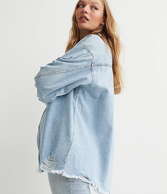 H&M se lanza a por el estilo 90's con una camisa oversize que igual te sirve de chaqueta. Tejido 100% algodón, con cuello inglés, manga larga, cierre de botones, dos bolsillos y bajo desflecado efecto roto, a un precio de 24,99 euros. Ideal con camiseta blanca y jeans a juego o abierta con maxi vestidos y botas.