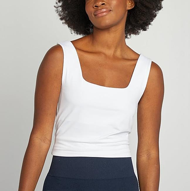 Si buscas un modelo más elegante, prueba con este de Kiabi con escote cuadrado. Nos encanta su tejido suave de licra y su toque elástico. Precio: 8 euros.