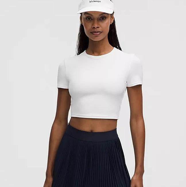 Esta camiseta corta está elaborada con un tejido elástico en cuatro direcciones que absorbe el sudor. Además, lleva un sujetador incorporado para ofrecerte la sujeción que necesitas. Precio: 68 euros.
