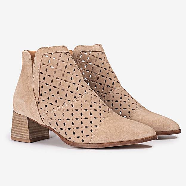 El modelo que ha escogido Carmen es un botín de tacón bajo y ancho, que está fabricado en material de serraje picado con un toque boho chic. Y lo mejor de todo es que tienen un tacón de 5 centímetros muy cómodo que hace que estos zapatos sean perfectos para el día a día. Cuestan 85,95 euros y están disponibles en cuatro colores: rosa, beige, dorado y marrón. Este último es que el ha lucido la socialité demostrando que es una opción que combina muy bien con todo.