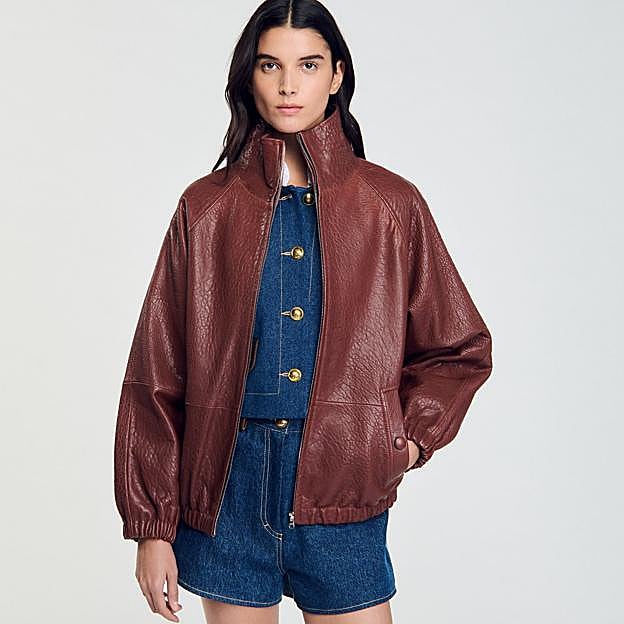 Para las que no puedan resistirse al color de la temporada, dejamos este modelo de Sandro. Es una cazadora de corte oversize confeccionada en cuero con relieve que tiene un diseño de cuello alto, cierre de cremallera, manga larga y bolsillos laterales. Precio: 625 euros.