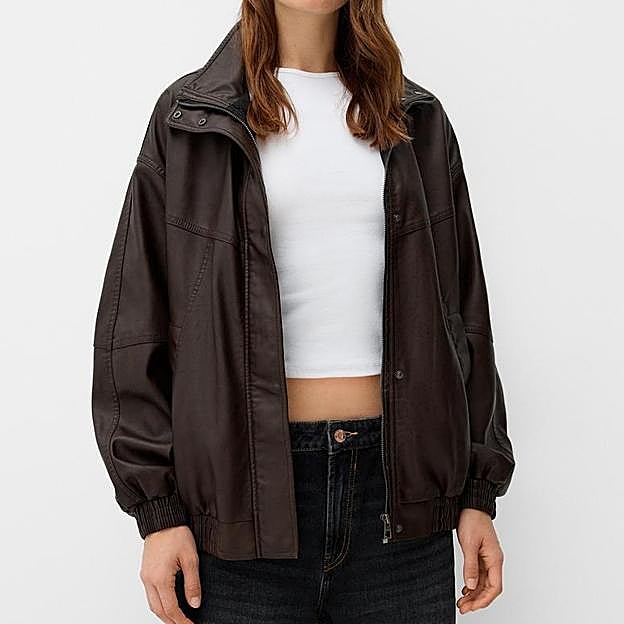 Si prefieres algo ponible, pero que no sea de color negro, en Bershka tienes a la venta esta en un tono marrón chocolate perfecto para el otoño. Es un modelo oversize de estilo masculino y con tejido efecto piel. Precio: 39,99 euros.