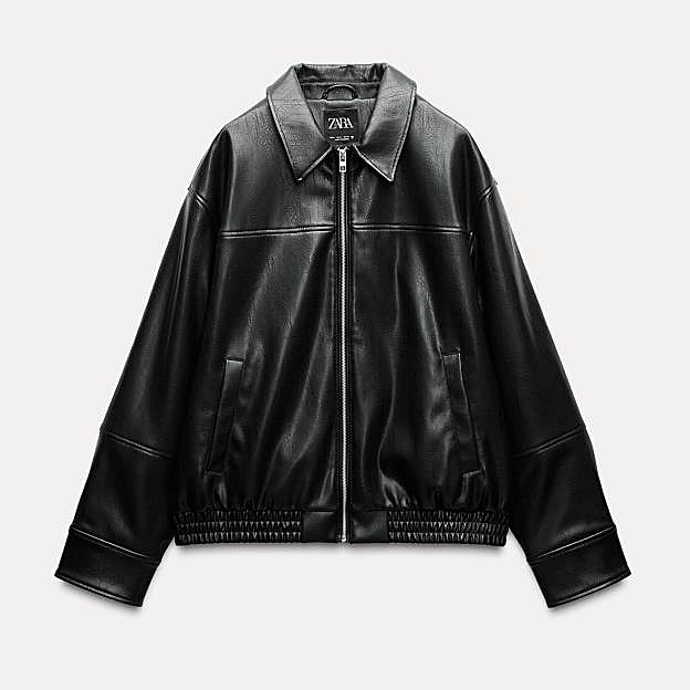La opción low cost la traemos de la mano de Zara, la firma de Inditex que tiene a la venta esta chaqueta bomber de cuello solapa y manga larga acabada en puño con botón. Es de color negra, lleva bolsillos de vivo en delantero y un bajo con elástico. Precio: 39,95 euros.
