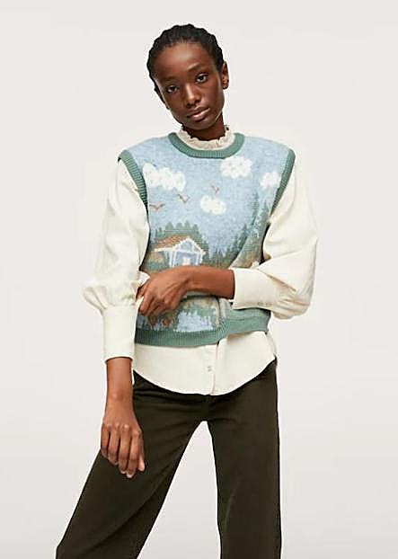Se trata de un chaleco de punto con un bordado de paisaje en tonos azules y verdes ideal. Cuesta 29,99 euros y es perfecto para llevar solo o con una camisa o canisets debajo. ¡Conseguirás un lookazo de manera fácil y rápida!
