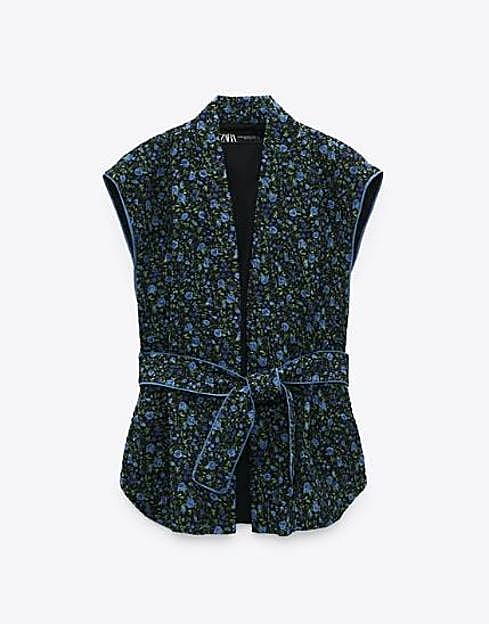 Se trata de un chaleco acolchado con manga sisa y protagonizado por un bonito estampado floral en tonos azules sobre un fondo azul marino. Es un modelo largo que queda a la altura de la cadera y que, además, lleva un cinturón a juego para ajustarlo a la cintura y dejar así la silueta definida. ¿Su precio? 29,95 euros y está disponible únicamente en dos tallas: XS-S y M-L.