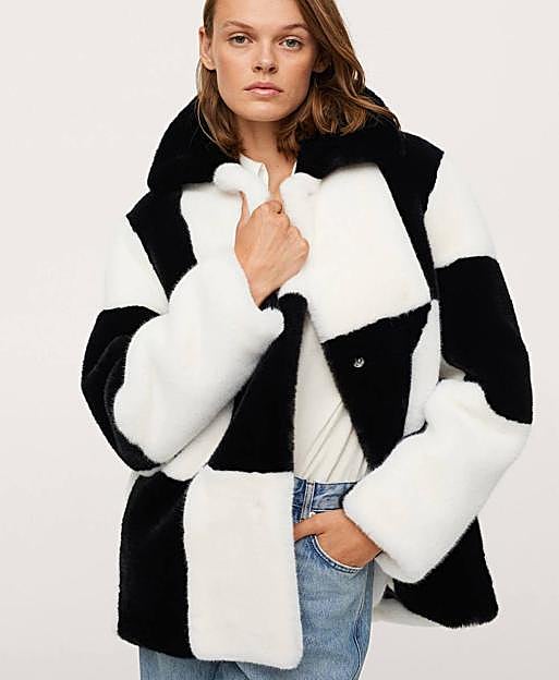 Cuando hablamos de invierno en estado puro, no existe nada mejor que un buen abrigo de pelo, acogedor, de aspecto lujoso e increíblemente suave. Eleva cualquier estilismo y lo convierte en glamuroso, incluso si se trata de unos vaqueros con camisa o unos joggers con sudadera. Como hemos venido a sacar nuestro lado más fashionista, la propuesta de Mango es todo lo que necesitamos, por supuesto, protagonizada por el print 'damier' que se ha hecho con la nueva colección de la tienda. Hablamos de un 'faux fur' corto, diseño recto, con cuello clásico y a cuadros bicolor en blanco y negro, por 119, 99 euros.
