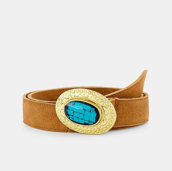 Cinturón de mujer de Green Coast confeccionado en 100% piel, con hebilla y adornos en piedra de color azul. Precio: rebajado a 9,99 euros.