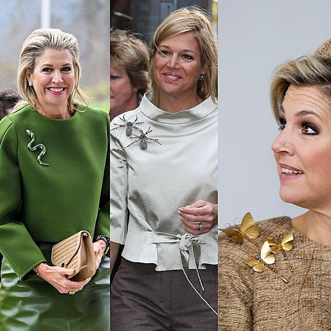Máxima tiene en su colección varias piezas con forma de estos pequeños animales. Desde una serpiente -un diseño vintage de la marca Sardi-, pasando por unas mariposas y hasta unas arañas de la firma Celedonio, con sede en Buenos Aires. Lo que está claro es que no le gusta pasar desapercibida.