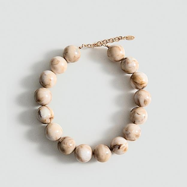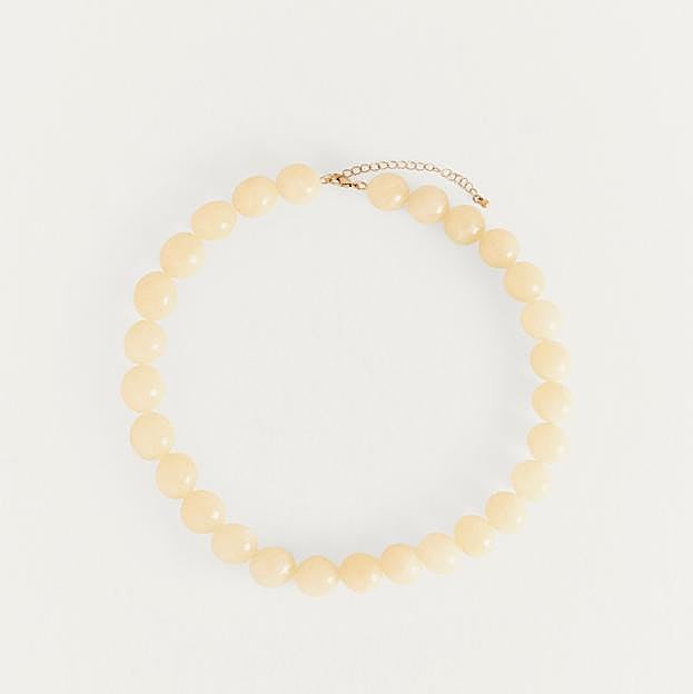 En Mango hemos fichado este collar de tamaño grande con un diseño de bolas de efecto madera desgastada. Tiene el cierre de cadena y mosquetón. Precio: 25,99 euros.