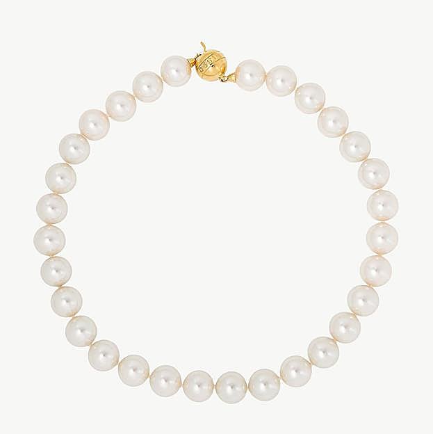 Si te gusta lo clásico, prueba con este collar corto de 45cm de Majorica confeccionado en plata bañada en oro de 18k y con perlas redondas blancas de 14mm. Precio: 549 euros.