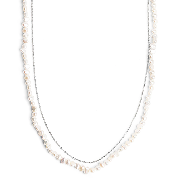 En Singularu, sacan la versión más moderna del collar de perlas con este modelo doble qu va combinado una fina cadena en color plateado. Precio: 41,99 euros.