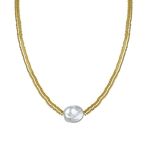Entre las infinitas versiones que hay de los collares de perlas, también puedes probar con los que tienen una única pieza y algo más grande. Este modelo de Luxenter nos ha encantado porque va combinado con una cadena en oro amarillo de 18K. Precio: 49,90 euros.
