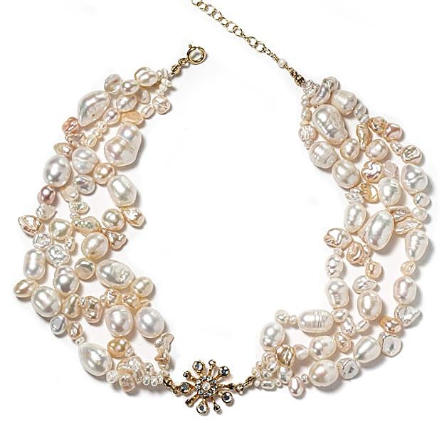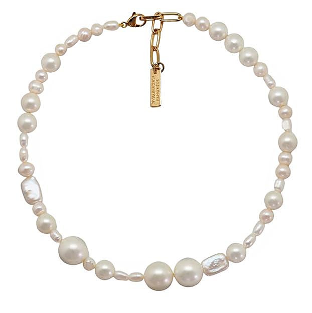 Eleonor de Casanovas tiene varios modelos originales e incluso con color para llevar solos o mezclados con otros collares. El modelo OnlyCoolPearls está hecho a mano que combina diferentes perlas barrocas cultivadas de agua dulce de formas y medidas muy distintas para darle un aire totalmente irregular y original al collar. Precio: 59,95 euros.