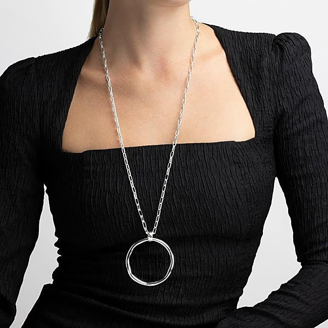 Collar acabado en rodio con cadena y charm en forma de aro XL de Luxenter (rebajado a 29,90 euros).
