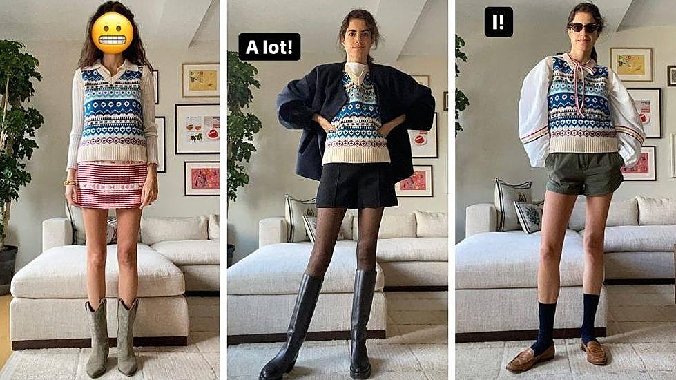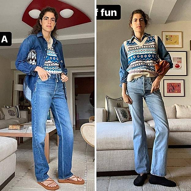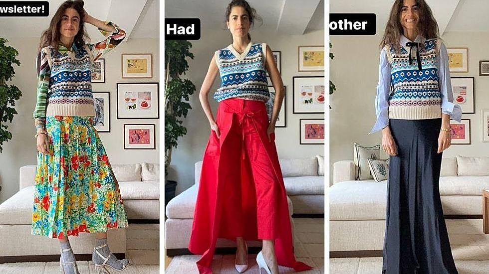 Leandra Medine (o Man Repeller), es conocida en la industria de la moda por su estilo único super personal. Fue una de las primeras fashion bloggers e 'it girls' y quizás, la que puso en boga las mezclas llamativas de prendas, con estampados, colores, proporciones y estéticas muy diferentes, en looks de lo más originales. ¿El resultado? Un atuendo con mucho gusto, diferente, rejuvenecedor y elegante. Por eso, nos fiamos de ella a la hora de obtener ideas que nos solucionen la vida cuando la inspiración se nos agota. Ella consigue que todo funcione y ha hecho exactamente eso en sus 'stories' de Instagram, mostrando el poder de un simple chaleco de punto.