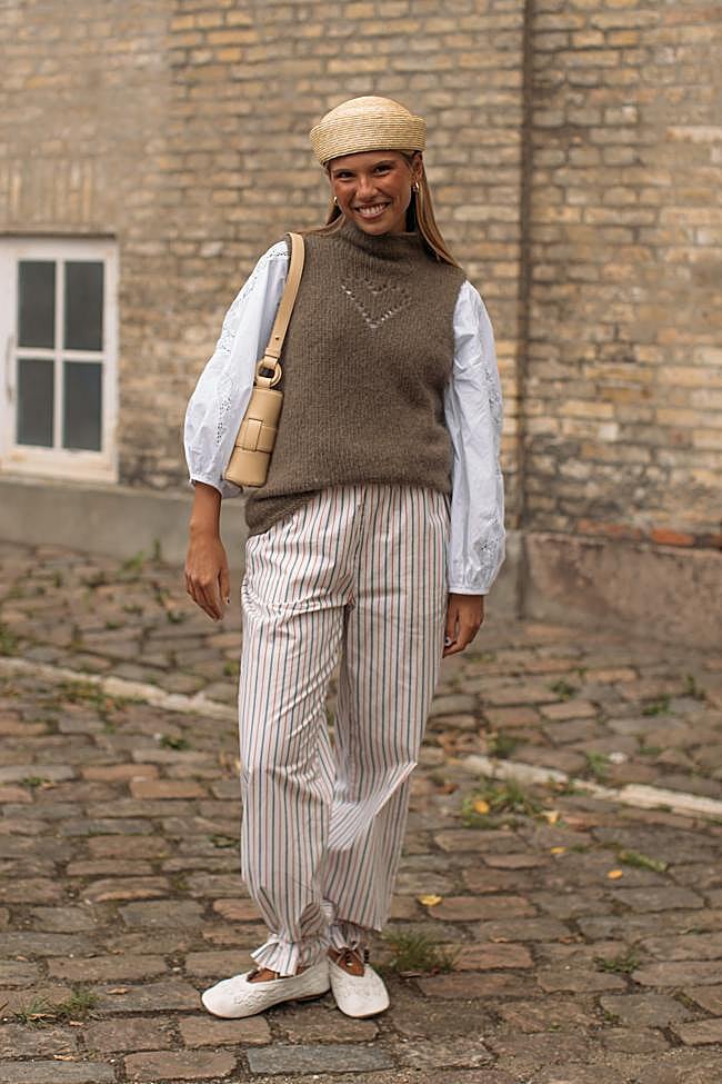 Pensando en el otoño, añade a tus pantalones una camiseta de rayas de manga larga y pon el punto estilizador con un cinturón que marque la cintura. Unas bailarinas y... ¡Lista!