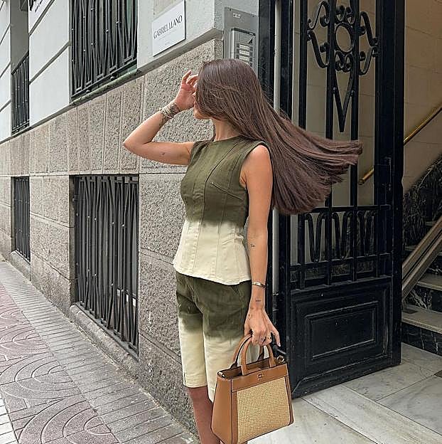 Es el típico look que verías en la tienda y no pensarías en comprar, pero que al verlo puesto te sorprende por lo bien que queda. Si quieres sacar su versión elegante, haz como Violeta y añade unas sandalias planas y un bolso de rafia. ¡Estarás ideal!